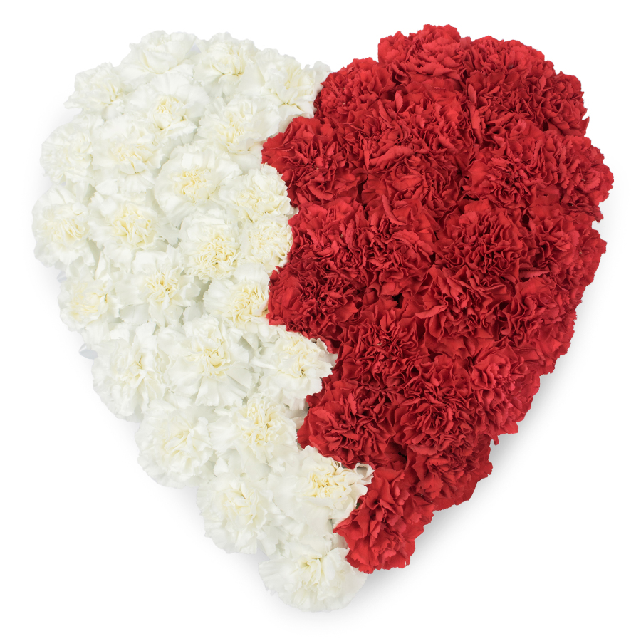 Indulge in the exquisite beauty of our red and white carnation bouquet. Each carnation is carefully hand-selected for its exceptional freshness and stunning hue, ensuring a unique floral design that captivates.